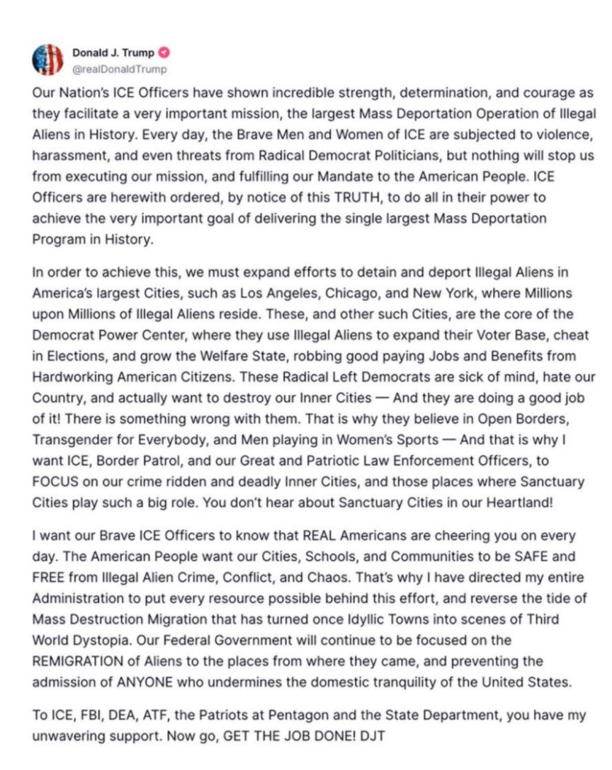 “So, if you don’t like the snatch-and-grabs you’re seeing in Los Angeles, be warned that the Big Beautiful Bill will bring those raids and detentions to your city. The enforcement apparatus being directed by White House ‘border czar’ Tom Homan and Deputy Chief of Staff Stephen Miller will have much more resources to carry out operations across the country.”